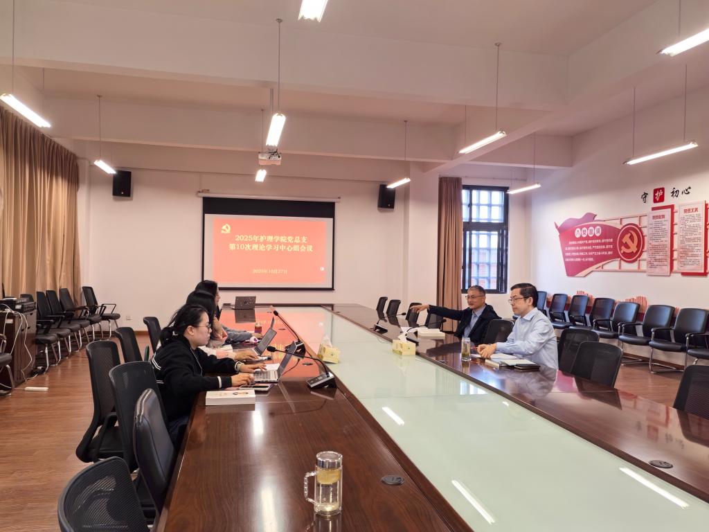 2025年10月27日,护理学院党总支召开2025年第10次理论学习中心组会议。会议由学院党总支书记陈枫主持,党总支理论学习中心组成员参加学习。