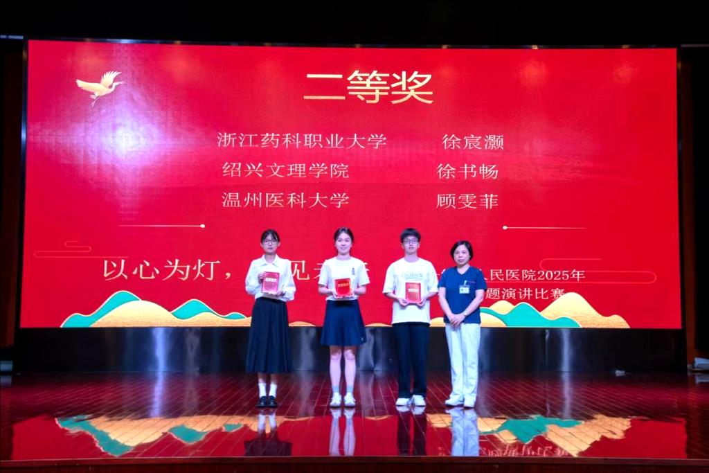 9月,绍兴市人民医院举办“以心为灯,护见未来——我的护理梦”主题护生演讲比赛,我校A22护理4班首届职业本科护理专业学生徐宸灏,从各大高校156名实习生里脱颖而出,荣获大赛二等奖。据悉,本次演讲比赛参赛院校涵盖浙江药科职业大学、温州医科大学、杭州医学院、温医大仁济学院、绍兴职业技术学院、湖州学院、嘉兴大学、文理学院、元培学院等多所高校。该同学的演讲主题立意深刻,语言表达感染力强,抒发职业本科生的担当与志向,引发评委和观众共鸣。他在实习期间认真负责,操作严谨,沟通温暖,及时总结并记录收获,获各科室带教老师广泛肯定。