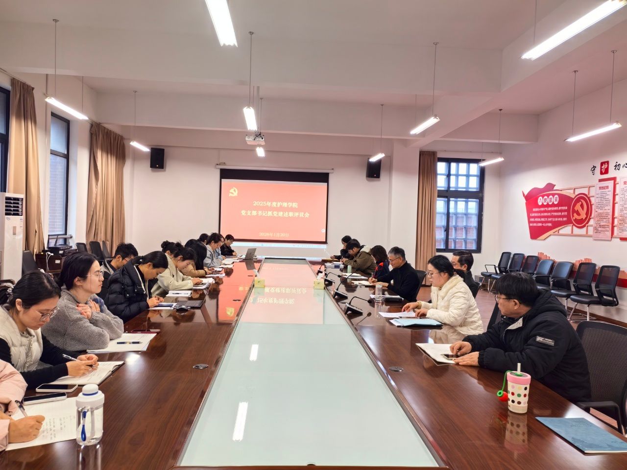 1月20日,护理学院党总支召开2025年度党支部书记抓党建述职评议会。学院全体党员参加会议,会议严格按照“一述一评”的规范流程有序开展。