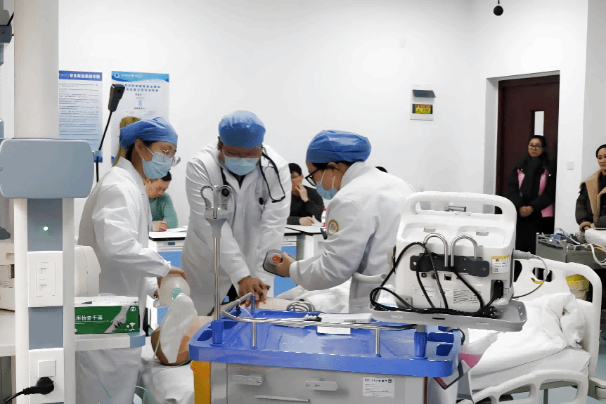 比赛现场气氛紧张而有序。参赛医护人员精神饱满、操作娴熟、应对沉着,在面对模拟复杂病例时展现出扎实的专业功底、敏捷的临场判断和良好的团队协作精神,充分体现了奉化区基层医疗队伍日益精进的专业素养与实战能力,为在场师生呈现了一堂生动精彩、贴近实战的临床实践教学课。护理学院孙瑜院长、虞立老师与奉化质控、急诊医护专家共同担任活动评委,孙瑜院长对本次活动做专家点评。