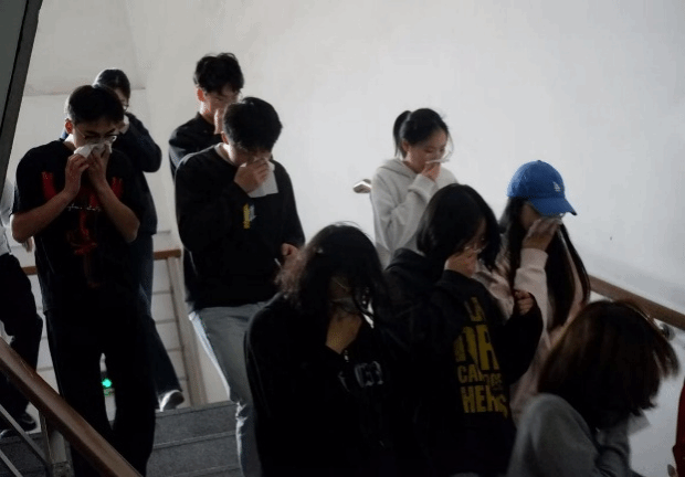 演练开始前,校安全保卫部副部长马学名为师生讲解了演习的重要意义与日常生活防火注意事项,并进行了消防安全知识培训。中午12时30分,随着消防警报响起,模拟场景设定为护理实验室突发火情,师生们迅速反应,严格遵循应急预案,弯腰捂鼻,沿指定疏散路线有序撤离,并同步完成气体泄漏处置——关阀门、开排风。整个疏散过程仅用时2分50秒,做到了快速、安全、无遗漏。