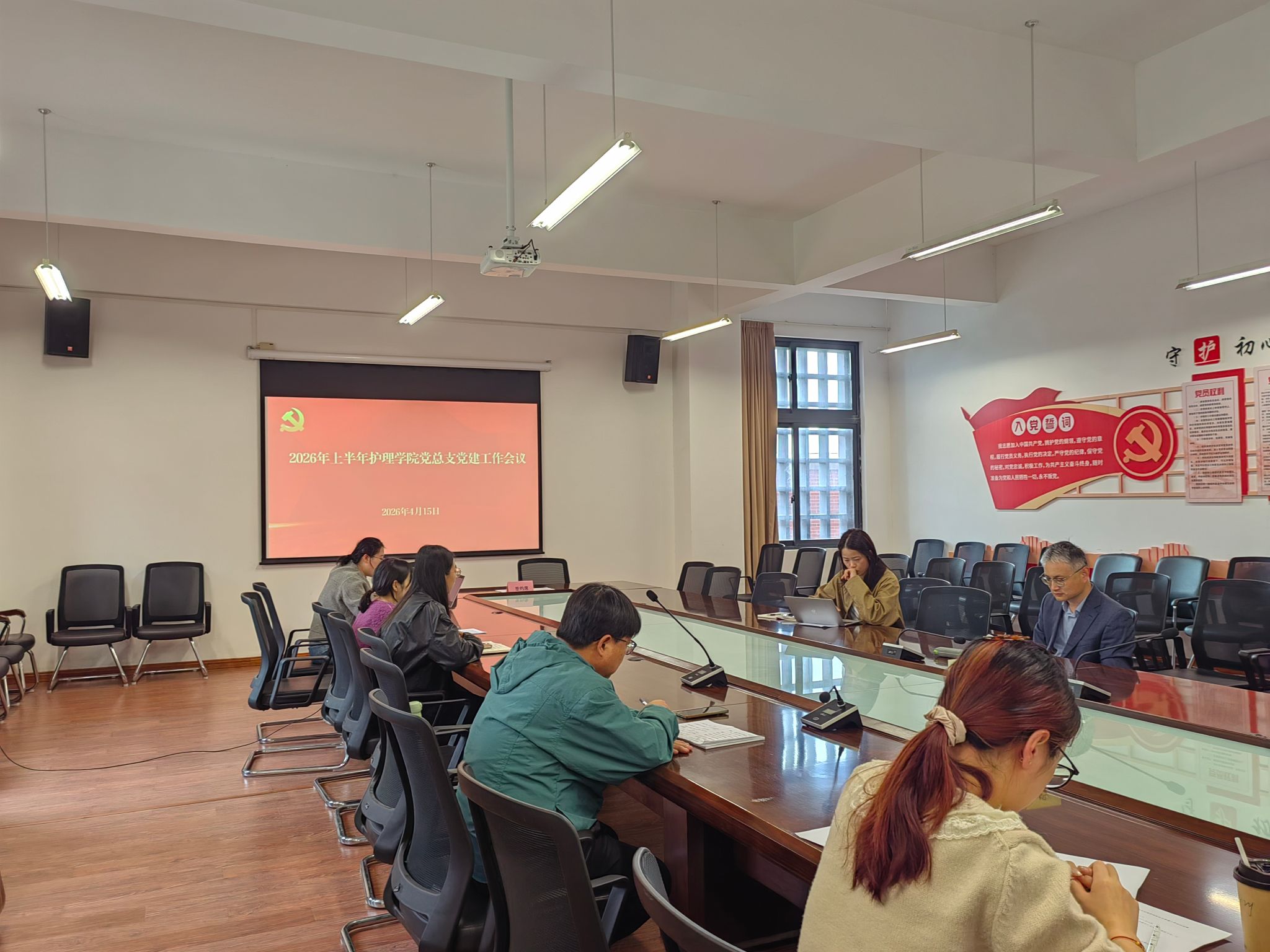 4月15日,护理学院党总支在学院会议室召开2026年上半年党建工作会议。学院党总支书记陈枫主持会议,学院班子成员、教研室主任、党支部委员、辅导员等参加会议。